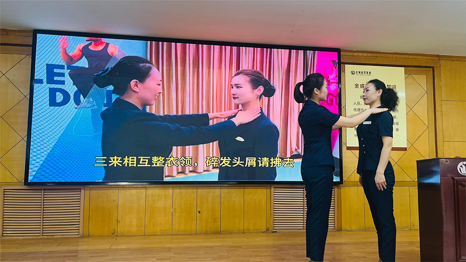 商城在制定本次培訓內容之初,就緊密結合經(jīng)營(yíng)工作需求和員工日常工作情況,確保培訓內容具有針對性和實(shí)用性。同時(shí),加強關(guān)注行業(yè)趨勢,及時(shí)更新培訓內容,使員工能夠掌握最新的專(zhuān)業(yè)知識和技能。培訓課程形式創(chuàng )新、活潑新穎,尤其是年輕管理人員授課團隊的集體亮相,使本次培訓工作新意頻現、活力無(wú)限。今年的培訓工作,商城領(lǐng)導充分考慮受眾人群,要求各部門(mén)抽調35歲以下年輕員工積極參加集中培訓。在寬敞明亮的大會(huì )議室,授課人員精心制作的PPT,在石董事長(cháng)親自安排安裝的LED電子屏的加持下,視覺(jué)效果完美呈現,為培訓錦上添花??偨?jīng)理助理陳曉結合自己多年工作經(jīng)驗,以《美陳主題及系列配色》為主題,現場(chǎng)為大家呈現了一堂色彩與陳列的視覺(jué)盛宴,加之現場(chǎng)示范與案例分析,讓所有人直觀(guān)感受到美陳布置對提升商場(chǎng)形象和銷(xiāo)售業(yè)績(jì)的重要性。總經(jīng)理助理李娜的《珍惜當下 快樂(lè )成長(cháng)》用“三個(gè)珍惜”進(jìn)行個(gè)人成長(cháng)經(jīng)歷分享。她通過(guò)自身經(jīng)歷,講述了在金威十八年的成長(cháng)蛻變,分享了在工作中遇到的挑戰和收獲以及自己加入“金青班”的飛速進(jìn)步。這些真實(shí)的故事讓大家備受鼓舞,不僅激發(fā)了員工們的工作熱情,也讓他們更加堅定在金威實(shí)現自我價(jià)值的決心。黨辦主任周瑞霞帶來(lái)的《回顧激情光榮歲月 篤定傳承金威事業(yè)》,對金威企業(yè)文化的深入講解以及兩段視頻的回顧觀(guān)看,讓每一位員工更深入地了解了金威的發(fā)展歷程、企業(yè)文化內涵,她結合工作實(shí)際,找到傳承金威企業(yè)文化的一個(gè)點(diǎn),從身邊的小事做起,去執行、去傳遞、去接力。